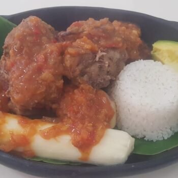 Puedes escoger entre sopa de sancocho o crema de champiñones, jugo de piña o limonada de panela